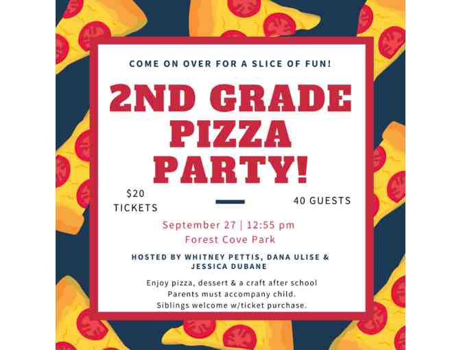 2nd Graders - Enjoy Pizza, dessert, a craft and the park right after school at Forest Cove park. Parent must accompany child. Not a drop off. Siblings may come with purchase of a ticket.