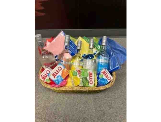 5 Cruzan Rum bottles, 5 Jello packets, & 5 colored napkins