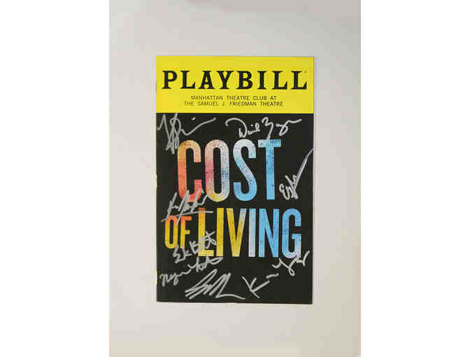 This wonderful full cast signed Playbill was donated by the original Broadway company of Cost of Living. The cover of the Playbill has been autographed by the full Broadway cast including all the understudies. Signatures include Gregg Mozgala, Katy Sullivan, Kara Young, David Zayas; and understudies Ezioma Asonye, Erick Bentancourt, Regan Linton and Ian Reier Michaels.