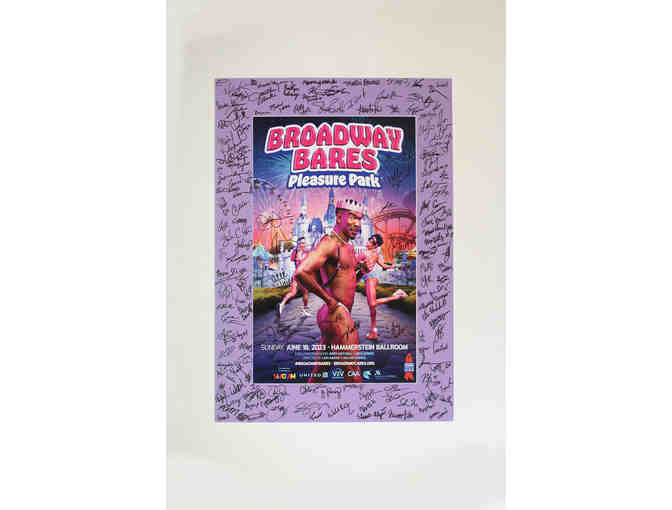 This years Broadway Bares invited the audience to join us in Pleasure Park. This poster has been signed by over 100 cast members including some of the featured performers & the creator of Broadway Bares. Signatures include J. Harrison Ghee, Jay Armstrong Johnson, Jerry MItchell, Justin Prescott, Nick Adams and Stephen DeRosa. The poster has been matted up to 20" by 28".