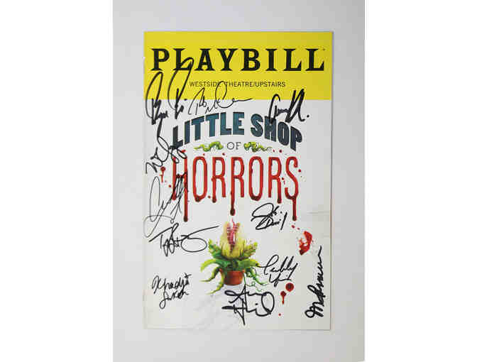 This Playbill from the Off-Broadway production of Little Shop of Horrors has been signed by 11 members of the cast including Rob McClure, Bryce Pinkham, Lena Hall, Aaron Arnell Harrington, Ari Groover, Khadija Sankoh, Tiffany Renee Thompson and Josh Daniel. Please note: The Playbill has flaws, especially along the right edge.