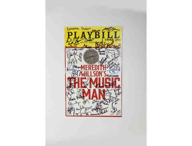 This is an autographed opening night Playbill from the revival of The Music Man. It features over 45 signatures from the original cast members, including all the principal actors. Confirmed signatures include Hugh Jackman, Remy Auberjonois, Gino Cosculluela, Emma Crow, Shuler Hensley, Jayne Houdyshell, Jefferson Mays, Marie Mullen, Nick Alvino, Ronnie S. Bowman Jr., Phillip Boykin, Kammie Crum, Carlee Flanagan, Emily Jewel Hoder, Curtis Holland, Eddie Korbich, Kayla LaVine, Drew Minard, Linda Mugleston, Ann Sanders, Jessica Sheridan, Kayla Teruel, Nicholas Ward and Rema Webb. It's a valuable and collectible item from a star-studded production.