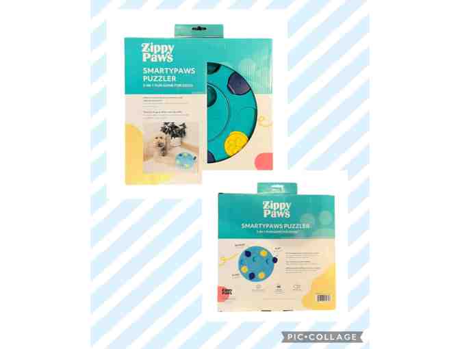 It’s time for doggo to take matters into their own paws with the SmartyPaws Puzzler! This all new interactive toy from ZippyPaws teaches dogs problem solving skills for a fun and engaging way to receive treats or kibble! The 3-in-1 game features different levels of difficulty that entertain and reduce boredom while teaching your pup problem solving skills. Non-slip base to prevent sliding. Like any toy, do not leave your pup unsupervised while playing.
