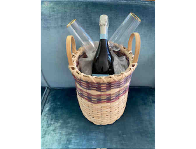 Take home this lovely handwoven basket and celebrate with the prosecco and two glass flutes.