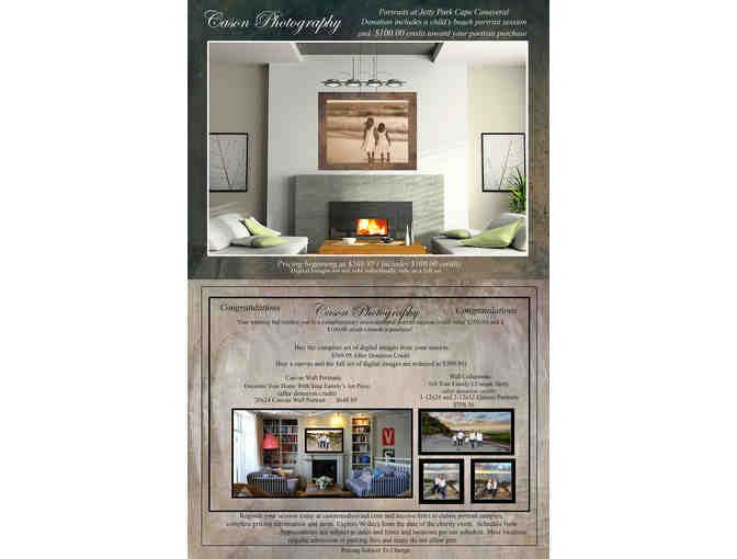 From Cason Photography. One complimentary Family Beach Portrait Session at Jetty Park, Cape Canaveral in Brevard Co. And a $100 credit towards a portrait purchase.Retail Value $350.00 (Shipping fees are extra & not included in donation). Expires 3 months after the event (January 12, 2024).