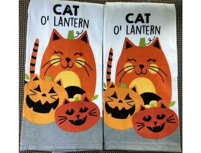 Dual purpose towels measuring 16 x 26 inches. Classic flat tea towel surface and back side is absorbent terry cloth. 100 percent cotton.