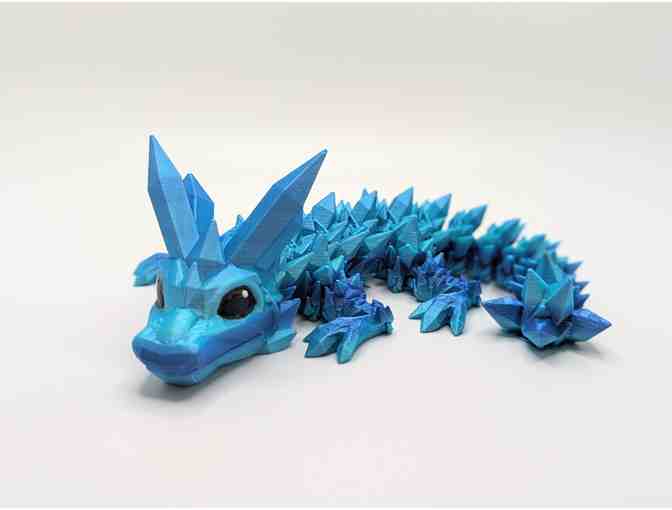 Generously donated by The Filament Farm in North Bend, Washington, this 3D printed dragon is a must have! It is 9 inches long, and the pieces all move separately for a fun and fascinating toy. The material is smooth and the color beautiful. Children and adults alike will enjoy this unique toy!