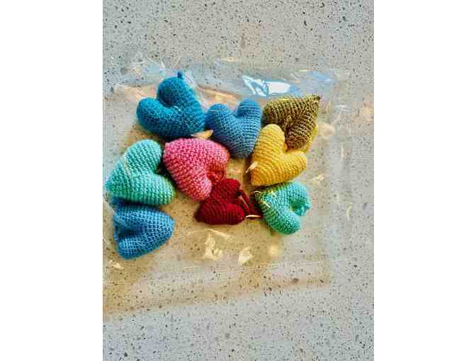Handcrafted set of 9 plush, felt heart ornaments for your Christmas tree decorations or a nice gift for your friends, family, co-workers