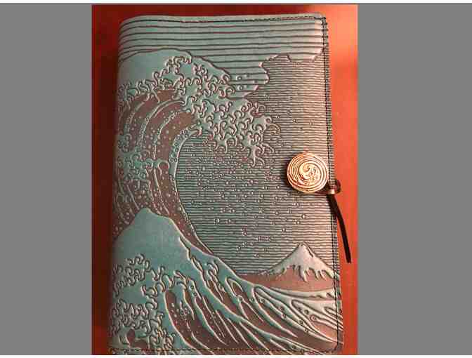 This very beautiful leather journal, created in Santa Rosa, California, by Oberon Design, measures 6" x 9" and contains blank pages. The journal can be refilled with paper when needed. It is in itself an inspiring work of art and creativity!