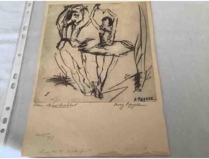 ARTIST PROOF, usually a gift to special friends, Drypoint Etching by famed artist Henry Rayner, dated 1934, Bluebird Ballet.