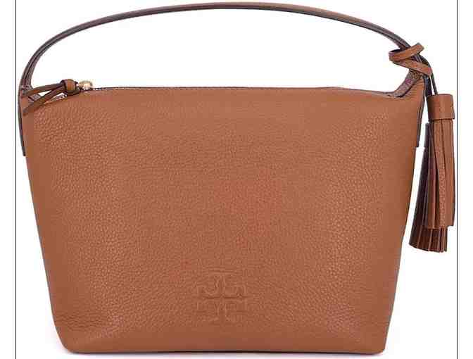 This shoulder bag from Tory Burch is made from pebbled leather for a luxurious look. The bag has a fabric lining and inner slip pocket, and closes with a zip. The bag charm is a tassel. The bag measures 30.48 cm W x 22.22 cm H x 12.7 cm D.