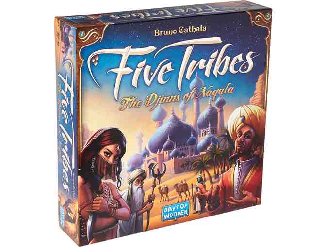 Designed by Bruno Cathala, Five Tribes builds on a long tradition of German-style games that feature wooden meeples. Here, in a unique twist on the now-standard "worker placement" genre, the game begins with the meeples already in place – and players must cleverly maneuver them over the villages, markets, oases, and sacred places tiles that make up Naqala. How, when, and where you dis-place these Five Tribes of Assassins, Elders, Builders, Merchants, and Viziers determine your victory or failure.