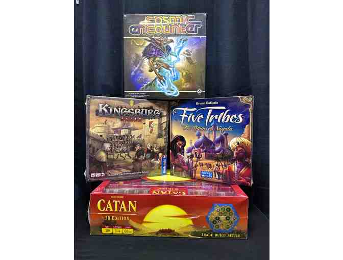 - Build a galactic empire in Cosmic Encounter, where alien races compete for control of the universe, forming shifting alliances, engaging in cataclysmic battles, and using unique powers to establish colonies on other players' planetary systems, with victory going to the first to secure five colonies outside their home system through a mix of force, cunning, diplomacy, and cooperative play.