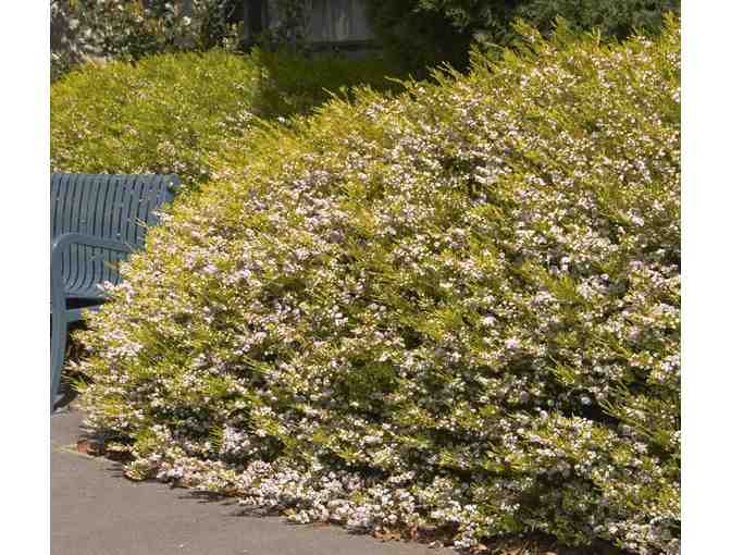 A low, spreading evergreen shrub with fantastic foliage. Displays attractive, tiny pink blooms over a long season. Golden heath-like leaves are very fragrant when crushed. Excellent for filling in empty spaces in borders with a burst of color.