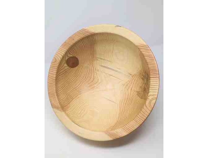 This beautiful bowl was made and donated by Chris Martineau!  Made from local Pine, it is 13 inches in diamater, and well made.  It would make the perfect center piece or fruit bowl!