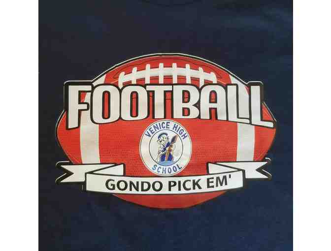Blue T-shirt proudly boasting "Gondo Pick Em' Football" in size XL.