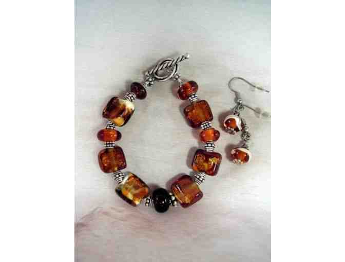 Amber Sparkle Bracelet & Matching Earrings Artisan Jewelry Set