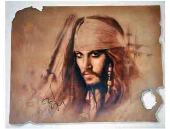This is a brand new 24x30.5" canvas painting that has been hand signed in person by Johnny Depp. This item comes certified authentic from Autograph Pros, LLC Authenticity Features: - A copy of the video of each of them signing will be included.-A Certificate Of Authenticity will be included from UACC Registered Dealer #237, UACC 2011 Autograph Dealer of the Year. (The most trusted COA in the industry) -A hand signed lifetime guarantee of authenticity. -We document each of our in-person autograph signings and the date and location from when this was signed will be detailed. -A photo taken at the time of signing. Item will be packed and shipped in a manner to ensure safe arrival.
