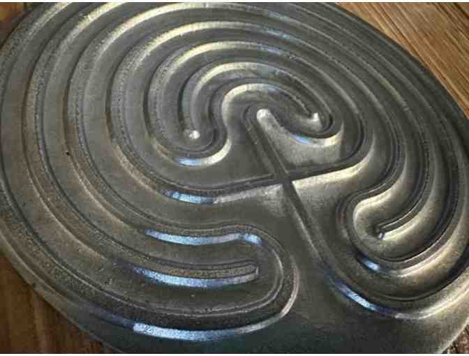 This labyrinth could be used as a finger labyrinth (with a stylus or deeply grooved enough to use your finger) or a beautiful piece of art. Has felt pads on the back for smooth and safe display anywhere. Generously donated to our 2023 auction by John Ridder. Comes with a perfect bag for storage.
