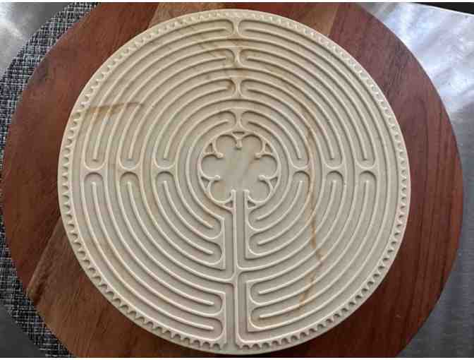 This beautiful labyrinth can be used as a finger labyrinth or a stylish accent piece. Donated to our 2023 auction by John Ridder, who notes that it is made of simulated Alabaster Marble (resin material). Features a soft felt backing.