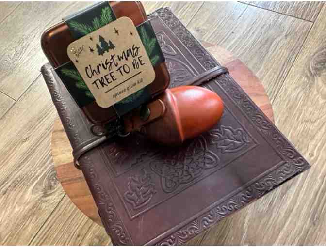 For the Celts, the Oak always stood as a symbol of strength, wisdom and longevity. So, where better to capture your own lasting words of wisdom than in this beautiful, larger format journal with its carved Celtic Tree cover? The pages are unlined, so you can add drawings or create collage pages, too. This package also comes with an adorable acorn-shaped leather pouch/coin purse to hang on a purse or tote or attach to a belt to carry a key, coins, a worry stone or any small object. And there’s even a plantable spruce to grow a tree of your own.