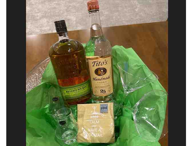 Bullet Rye and Tito's Vodka paired with assorted bar accessories and glasses topped off with a gift certificate for dinner for two at Shanahan's Steakhouse in Denver.