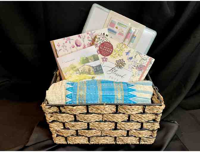 "Indulge in the charm of women's handcrafted treasures with our auction item: 'Women's Hand Crafts and Organizers.' This beautifully curated package combines the best of artistry and practicality, featuring a sturdy and decorative metal and fiber basket that's both eye-catching and functional.