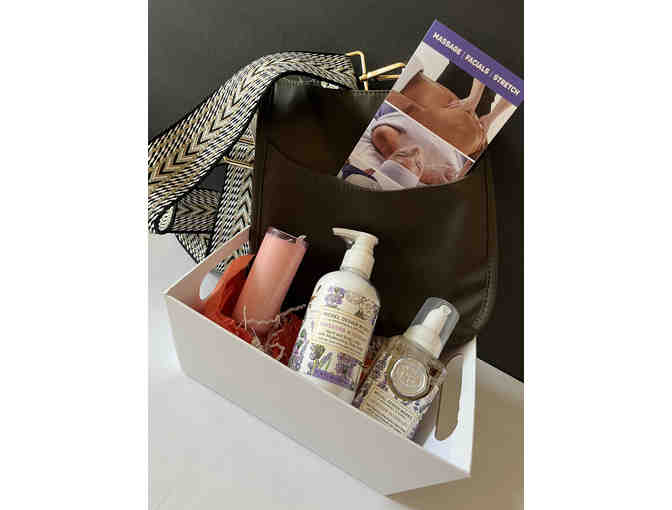 A perfect selfcare kit to enjoy anytime of the year. This item includes a small olive colored purse from AHDORNED and a gift card from Message Envy. "Massage Envy is a nationwide wellness franchise providing massage, stretch, and skin care services. The brand is built upon the belief that regular massage, stretch, and facials are integral components of whole-body wellness and keep your body working". Finish your selfcare day by using a candle, lotion, and foaming soap from Michel Design Works in the scent Lavender Rosemary.