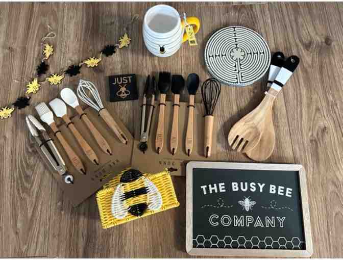 - Wooden Wall Art (easy to hang with an attached hanger) that shows "The Busy Bee Company" in a delightful design