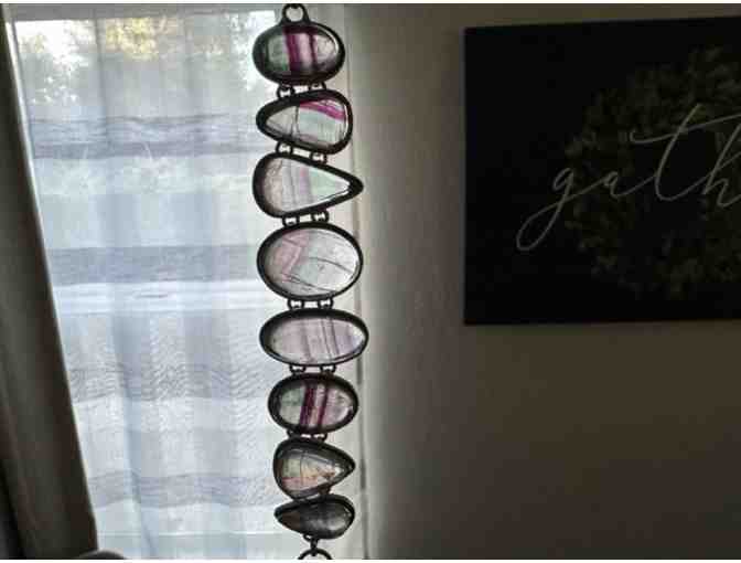 This bracelet is jaw droppingly beautiful with it's beautiful colors, and fine silver craftsmanship.  Comes with it's own silver-hued elegant gift bag.  Adjustable size up to 9 inches... WOW - BEAUTIFUL STONES!