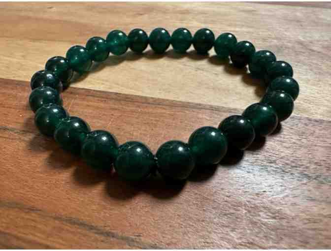 Green Jade Bracelet. Handmade in India. Durable & Flexible. Beads are on a stretchy band for easy wear.