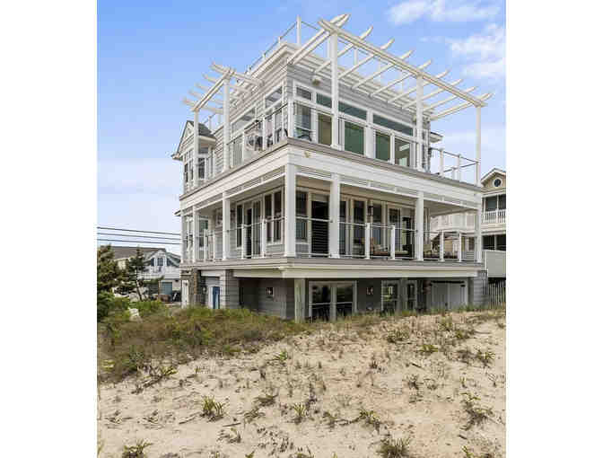 Spend the week of June 14 to June 21, 2024 in a stunning oceanfront home in Brant Beach on Long Beach Island, NJ. This home has unobstructed sweeping sunrise and sunset view from the second and third floor with wraparound decks and dual-level rooftop deck with 360* views to the horizon.