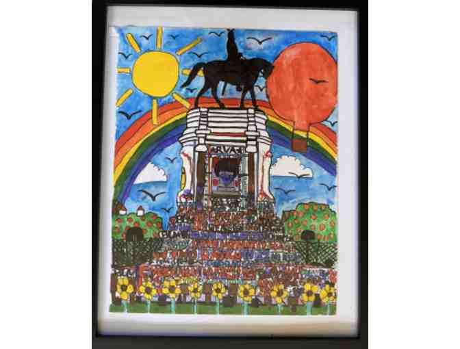 Acie Brown describes himself as “just as austistic artist.” He is 20 years old, and has been creating art based on his hometown, Richmond, VA, since he was a toddler. This drawing represents a piece of history that Acie was fortunate enough to witness-the Robert E. Lee statue before it came down.