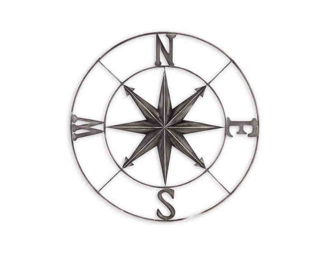 Infuse your space with the farmhouse style of the Averlain metal compass wall art. With antiqued gray directional markers and arrow points in a round frame, it adds a casual dimension to your space. Place it in the center of a wall, over a mantel or above a sofa or bed to add a nautical feel anywhere it's displayed.