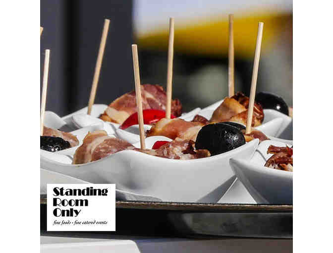 Entertain in style with this Gift Certificate from Standing Room Only Catering! Includes cocktail party hors d'oeuvres for 25 guests. (Service not included.)