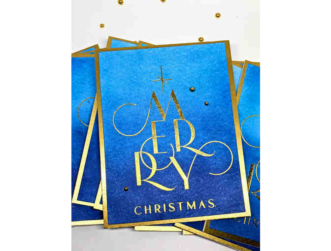 Gold foiled Merry Christmas on beautiful blended blue background;