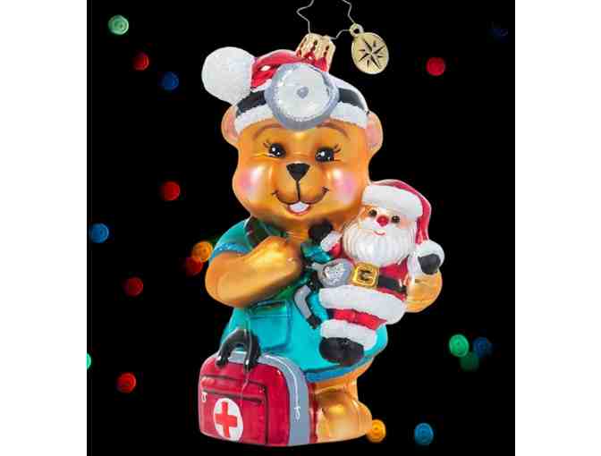 Dr. Teddy is ready to see (and snuggle!) some patients! He believes that love is the best medicine and wants to share encouragement and cheer with the sick children who need him most. A percentage of the sales from this Christopher Radko ornament will benefit Pediatric Cancer charities.
