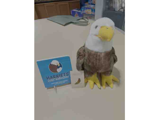 You are bidding on a fun package of items. An autographed copy of Harriet's Next Adventure Book, a bald eagle pin and a bald eagle stuffie.