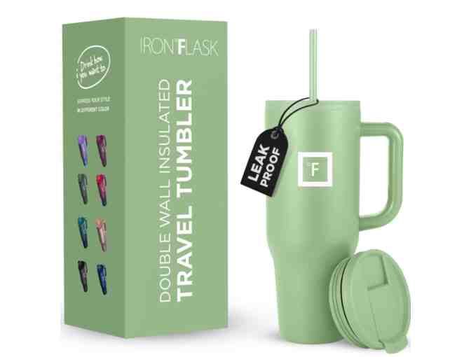 Iron Flask Co-Pilot Insulated Mug w/Straw and Flip Cap Lids. Cup Holder bottle for Hot or Cold - Leak Proof Travel Mug. Apple Green color. 40 Oz.