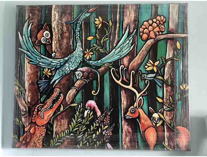 You are bidding on a beautiful, colorful and fun acrylic on canvas enhanced reproduction from this local artist. The finished piece - and ready for hanging - measures 36 x 30.