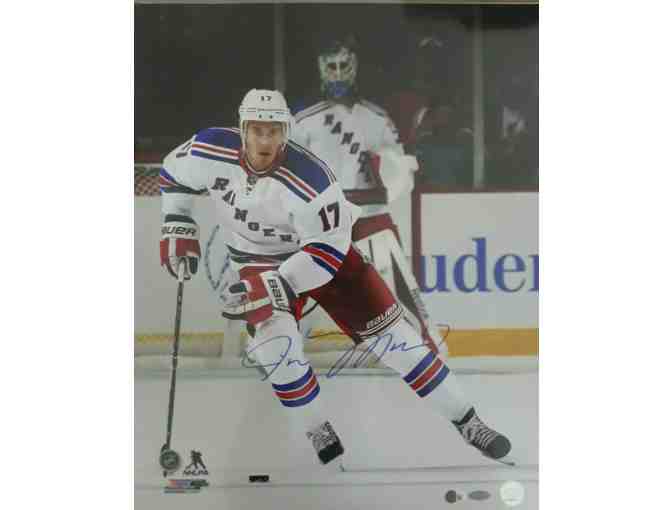 a fan favorite Lindgren and outstanding defenseman for the Blue SHirts signed this awesome mini helmet. along with the helmet a signed framed photo from NY Rangers John Moore. what a great lot this is for the avid Rangers fan.