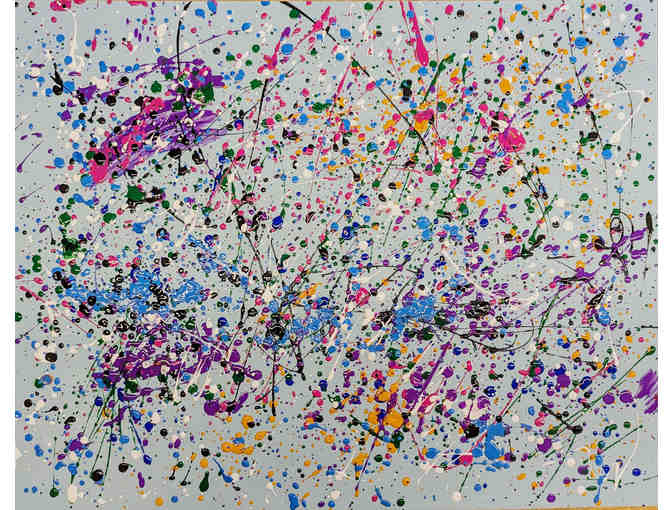 Bring home a truly unique piece of art with this Jackson Pollock-inspired masterpiece created by Mrs. Deemant and Ms. Kenny's classroom Room 1. Measuring 22" x 28", this vibrant piece features a dynamic explosion of colors, capturing the energetic and free-flowing style of Pollock's famous drip paintings.