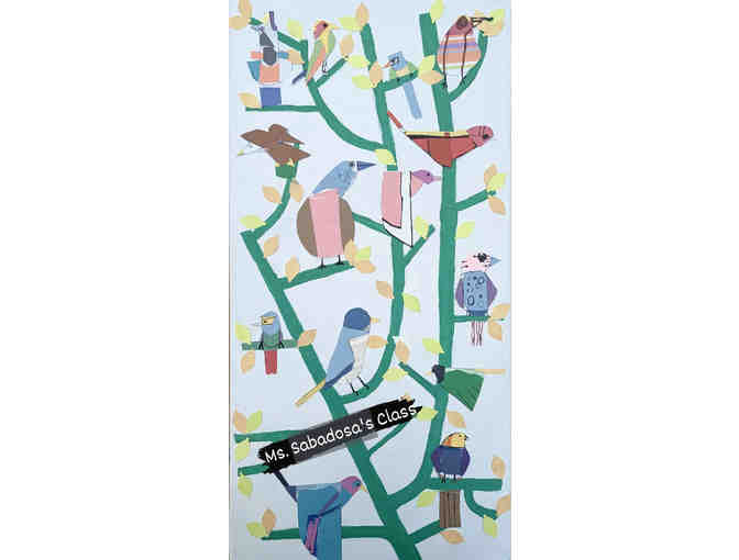 Created by the talented students of NCA’s 3rd Grade students in Ms. Sabdosa's classroom, this masterpiece showcases vibrant birds perched on branches, brought to life with clean lines, bold colors, and playful geometric patterns.