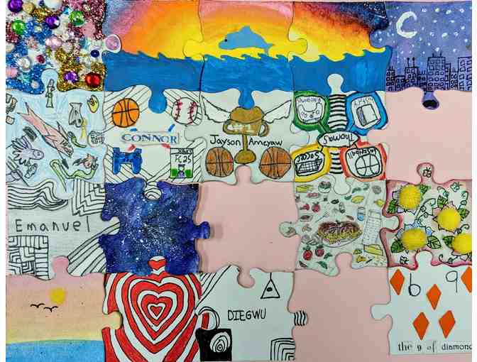 Once completed, this puzzle is beautifully framed and matted, ready to be displayed as a testament to creativity, collaboration, and community. Whether you’re a puzzle lover, an art enthusiast, or a proud supporter of young artists, this special piece is sure to bring joy and inspiration to any space.