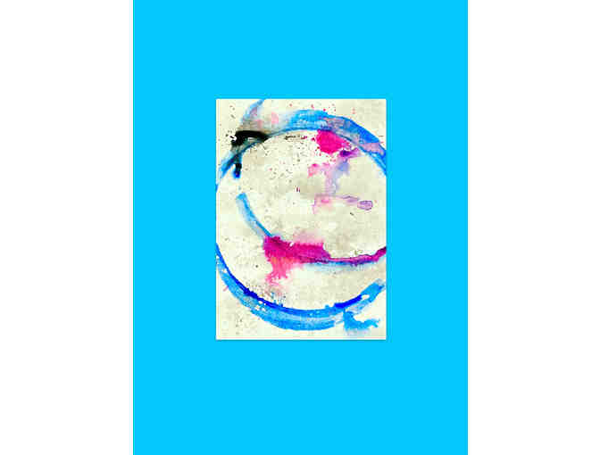 One of eight original art pieces resulting from a medium study by the artist, “Ink Study #3” explores the ways in which different colors of India ink interact with various tools and objects to create organic vs. structured compositional forms in water.