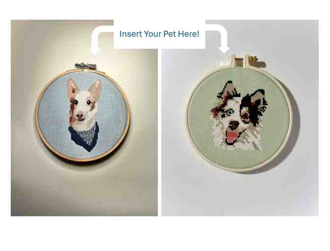 You will receive a 5 to 7-inch embroidery hoop fitted with a completed cross-stitch portrait of your pet. The portrait will be backed with felt to protect and preserve the cross-stitching.