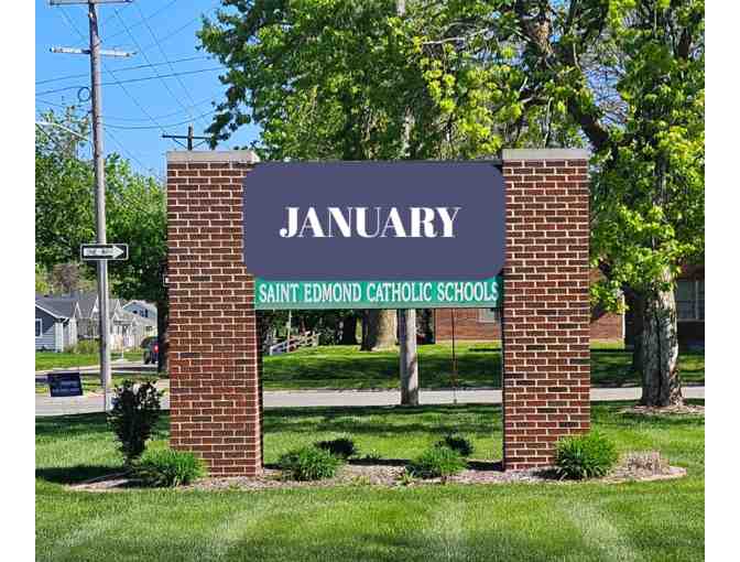 Celebrate a birthday, anniversary or make an announcement for your business on the St. Edmond marquee! Winner can choose a date, week or the whole month to share your message to those that drive by the school. Winner must contact Kate Stucky at the business office with their message the week before it is to be posted.