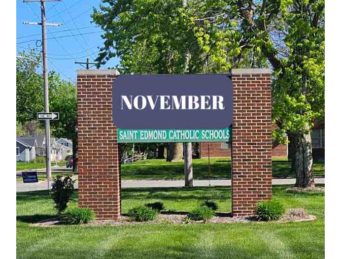 Celebrate a birthday, anniversary or make an announcement for your business on the St. Edmond marquee! Winner can choose a date, week or the whole month to share your message to those that drive by the school. Winner must contact Kate Stucky at the business office with their message the week before it is to be posted.