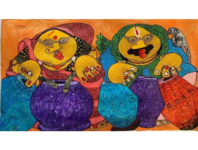 A famous Kolkatta based artist, he pursued his art education at the prestigious Santiniketan. Inspired from his daily life, Shyamlal Mukherjee creates figures in caricature with Bengali folk culture in his unique detailed style and believes his paintings should always spread happiness and joy! Exhibited all over the world, with over 54 solo shows, his art is bought by many famous Indian celebrities such as Manoj Kumar, late Sunil Dutt and Varun Gandhi, amongst others!