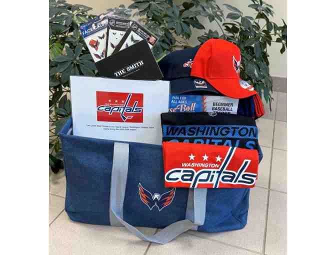 Get ready to cheer on the Washington Capitals in style with this ultimate fan experience! This exclusive basket includes Two Lower Bowl Tickets to any regular-season Washington Capitals home game during the 2025-2026 season. Experience the action up close at Capital One Arena! Enjoy a delicious pre- or post-game meal at The Smith, just steps from the arena. Keep the competitive spirit alive at home with family games for all ages to enjoy. Pack your essentials in the stylish and functional Washington Capitals tote bag, perfect for game days, tailgates, or outdoor gatherings. Deck yourself out in official Washington Capitals swag to show off your team spirit. Whether you’re heading to the game, enjoying a night out in DC, or having some family-friendly fun, this basket is a must for any Caps fan!